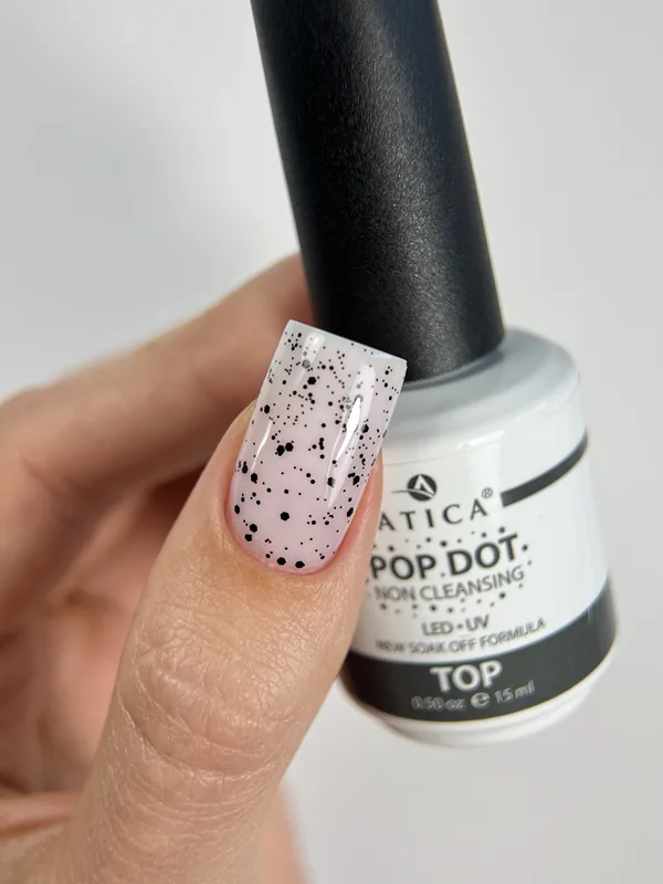 Atica Top Pop Dot No Wipe – top z czarnymi kropkami, 15 ml