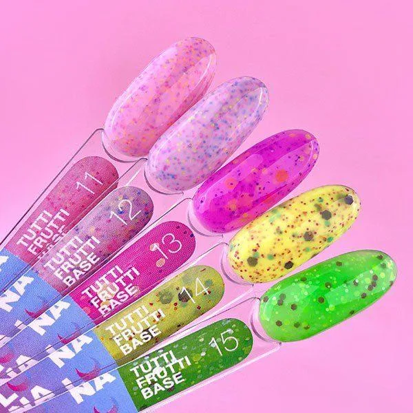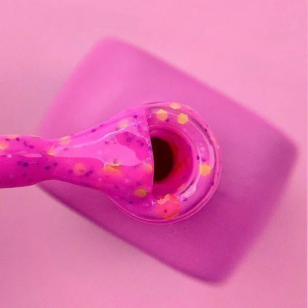 TUTTI FRUTTI BASE to baza kamuflażowa w różowym kolorze z różnokolorowymi plamami, która całkowicie zastąpi lakier hybrydowy.