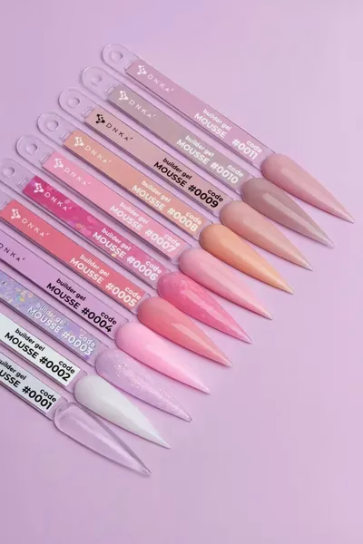 DNKa’ Builder Gel Mousse #0011 – unikalny żel, który łączy w sobie przyjemną, średniogęstą konsystencję przypominającą mus oraz właściwości tiksotropowe. Dzięki swojej formule umożliwia szybką pracę — można aplikować go na kilka paznokci jednocześnie, a jego zdolność do samopoziomowania minimalizuje potrzebę opiłowywania.