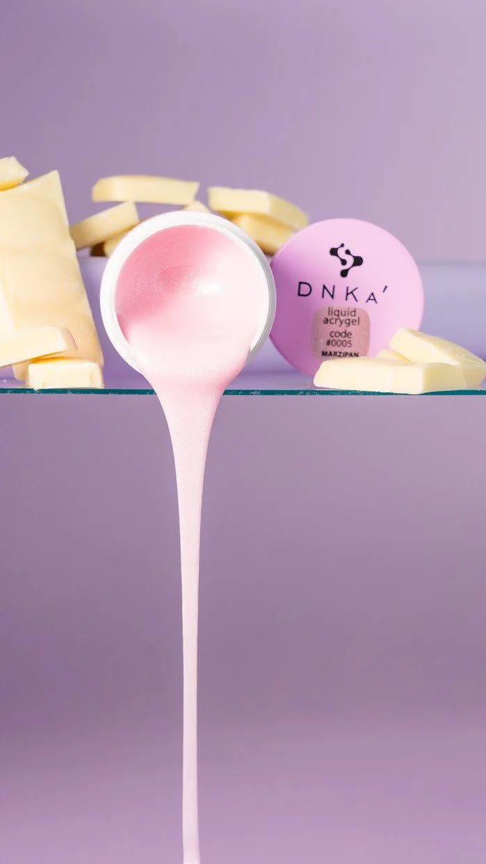 DNKA Liquid Acrygel 0005 Marzipan to linia płynnych żeli stworzonych do wzmacniania płytki paznokcia. Dzięki niskiej kwasowości, płynny akrylożel jest całkowicie bezpieczny dla paznokci. Idealnie nadaje się do cienkich i wrażliwych paznokci oraz ma średnią konsystencję. Świetnie wyrównuje i wzmacnia zarówno krótkie, jak i długie paznokcie. Żel nie ulega deformacji podczas noszenia i utrzymuje doskonały połysk aż do momentu korekty. Aby zapewnić lepszą przyczepność do płytki paznokcia, zaleca się stosowanie DNKA’ Rubber Base jako bazy, nakładanej cienką warstwą.