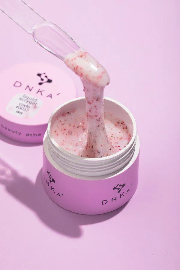 DNKA Liquid Acrygel 0037 Iris. Linia płynnych żeli stworzonych do wzmacniania płytki paznokcia. Dzięki niskiej kwasowości, płynny akrylożel jest całkowicie bezpieczny dla paznokci. Idealnie nadaje się do cienkich i wrażliwych paznokci oraz ma średnią konsystencję. Świetnie wyrównuje i wzmacnia zarówno krótkie, jak i długie paznokcie. Żel nie ulega deformacji podczas noszenia i utrzymuje doskonały połysk aż do momentu korekty. Aby zapewnić lepszą przyczepność do płytki paznokcia, zaleca się stosowanie DNKA’ Rubber Base jako bazy, nakładanej cienką warstwą.