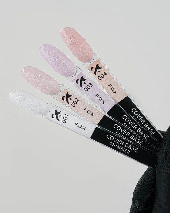 F.O.X Color Base Shimmer to kolekcja kamuflujących gęstych baz z połyskującymi drobinkami. Delikatne pastelowe odcienie nadają płytce paznokcia zdrowy wygląd i ukrywają niedoskonałości. Ponadto, bazy zawierają mieniące się drobinki opalu, które dodają pokryciu niesamowitego blasku.