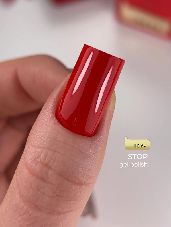 HEYLOVE Gel Polish STOP 15 ml to klasyczny czerwony lakier hybrydowy dla osób, które szukają czystej, eleganckiej czerwieni bez drobinek i bez efektów specjalnych. Ten czerwony lakier hybrydowy ma wysoką pigmentację i średnią konsystencję, dzięki czemu tworzy równą, gładką warstwę i zapewnia estetyczne krycie już od pierwszej warstwy. Idealny zarówno na krótkie, jak i dłuższe paznokcie – do stylizacji dziennych, wieczorowych i salonowych.