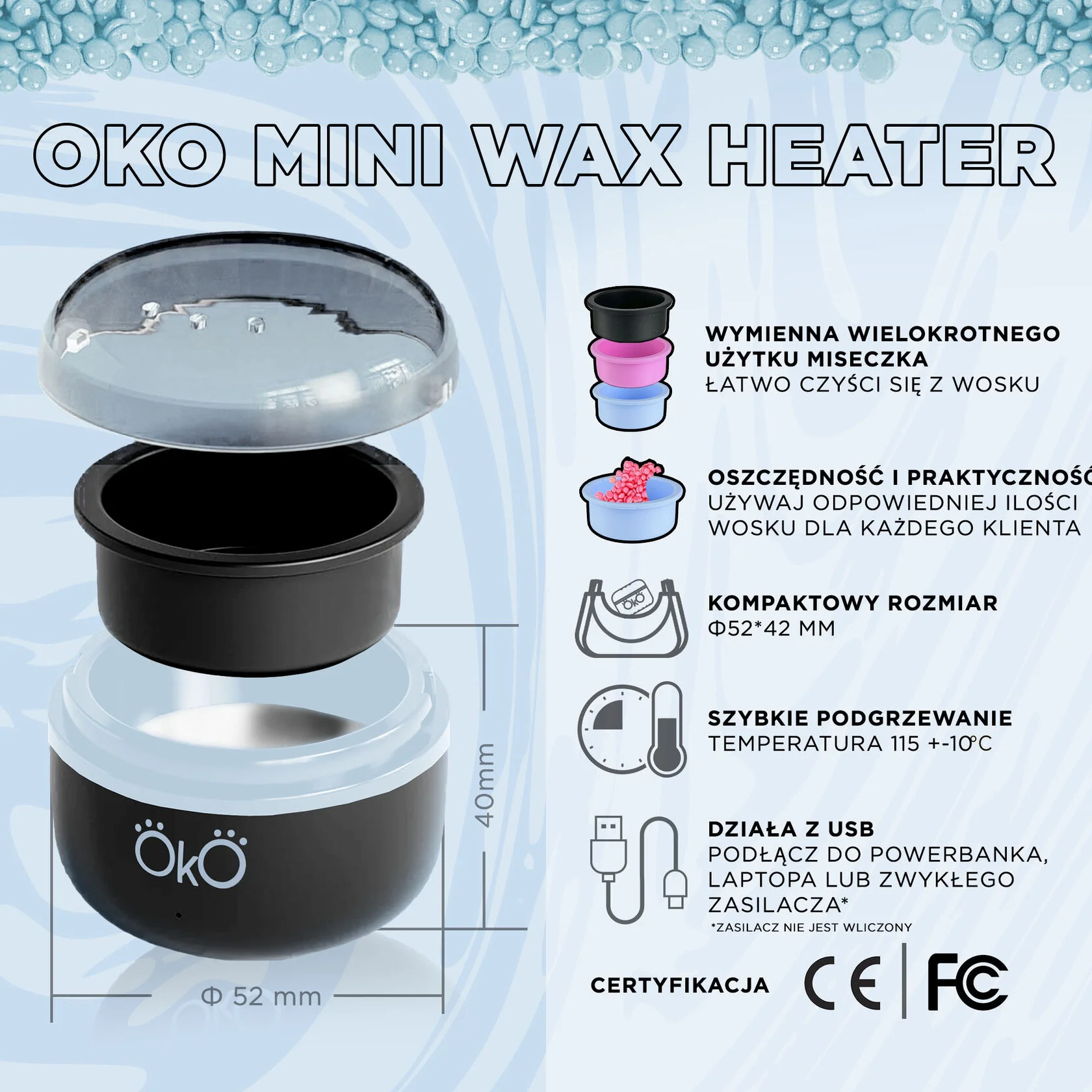OkO mini wax heater black to kompaktowy, przenośny podgrzewacz do wosku, który został zaprojektowany z myślą o maksymalnej wygodzie pracy i oszczędności miejsca. Dzięki niewielkim rozmiarom doskonale sprawdza się w salonie oraz podczas pracy mobilnej, pomagając uporządkować przestrzeń roboczą i przyspieszyć przygotowanie wosku do zabiegu.
