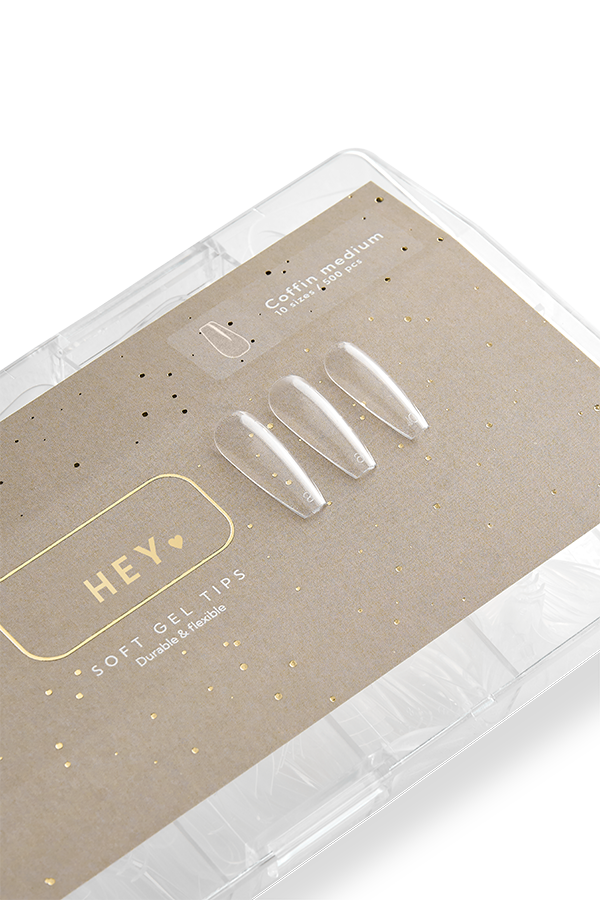 Tipsy żelowe HEYLOVE Coffin Medium 500 szt to gotowe formy przeznaczone do szybkiego przedłużania paznokci przy użyciu żelu, bazy budującej lub systemów hybrydowych. Popularny kształt coffin oraz średnia długość sprawiają, że są uniwersalnym wyborem zarówno do stylizacji codziennych, jak i bardziej efektownych projektów.