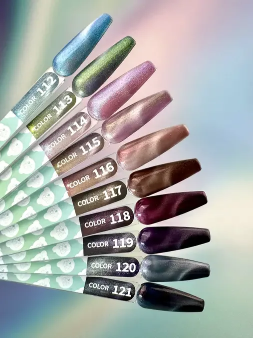 Odcień 113 to zielony flash cat eye w eleganckim wydaniu – świetny do stylizacji świątecznych, „emerald” oraz połączeń ze złotem.