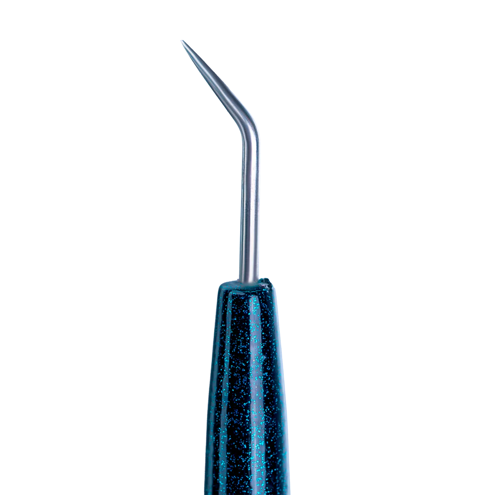 zakrzywiona końcówka umożliwia równomierne układanie rzęs na wałeczkach